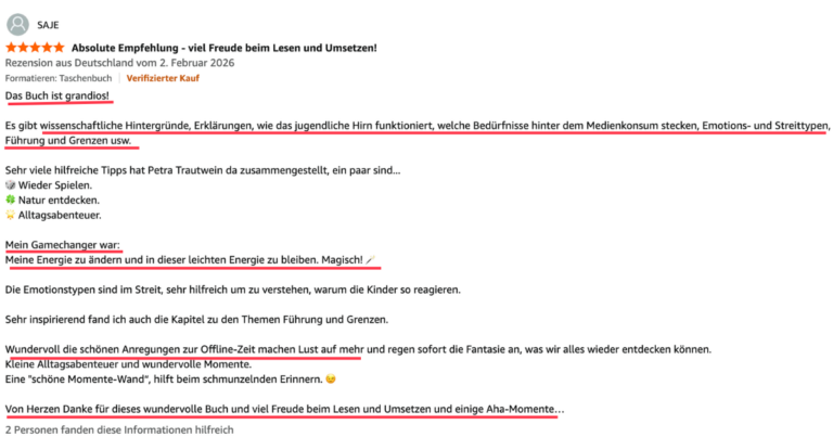Die Expertin begleitet Familien in ihrem Buch und ihrer Arbeit zu folgenden Resultaten: