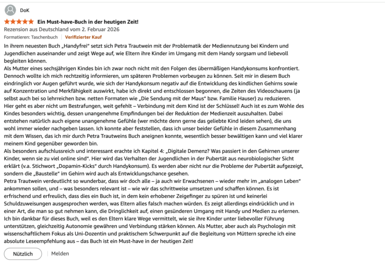 Denn die Folgen des exzessiven Medienkonsums sind längst kein Geheimnis mehr: Schulschwierigkeiten, Konzentrationsverlust, emotionale Abstumpfung, digitale Abhängigkeit, depressive Verstimmungen. Und doch schauen wir oft hilflos zu.